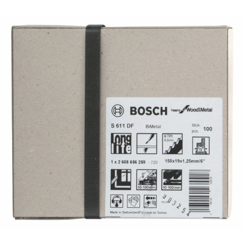Si vous voulez faire du shopping en ligne en toute sécurité, vous allez à la page de droite. Disponible une variété d'options, allant de la marque, le prix, à la couleur. Tous les produits prélevés directement sur Amazon, Qualité Assurée..!!Description complète de Bosch 2608656259 Lame de scie sabre S 611 DF Heavy for Wood and Metal S 611 DF BIM, denture progressive, avoyée, fraisée Bois clouté / métal, panneaux de particules (<100 mm), profilés plastiques (<100 mm), plastiques renforcés de fibre de verre, 100 pièces :